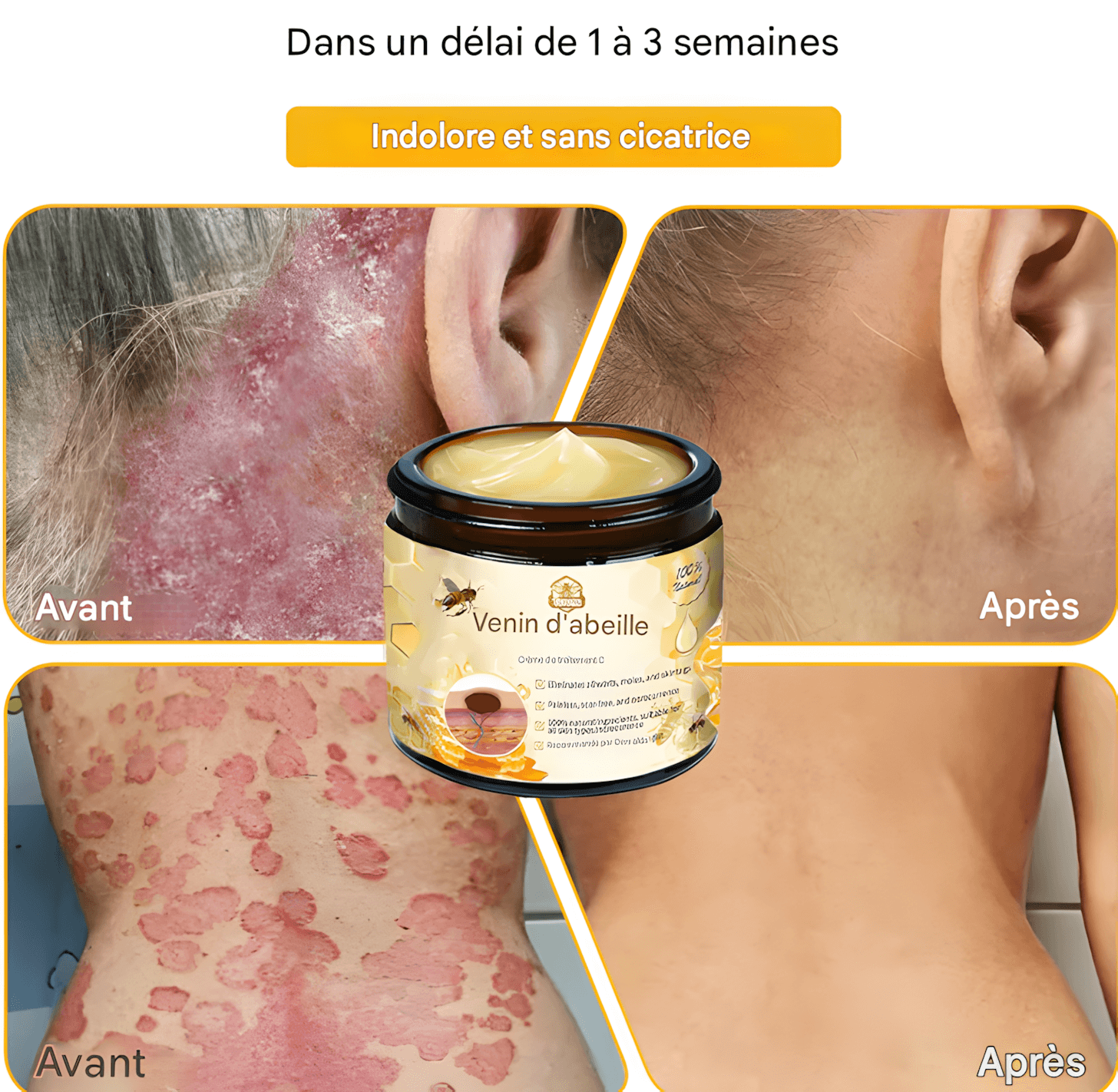 Marre des boutons, tâches ou cicatrices qui ruinent votre peau ? Découvrez le secret naturel des peaux parfaites : une crème puissante à base de venin d’abeille, d’acide salicylique et d’ingrédients végétaux, qui purifie, régénère et protège.
