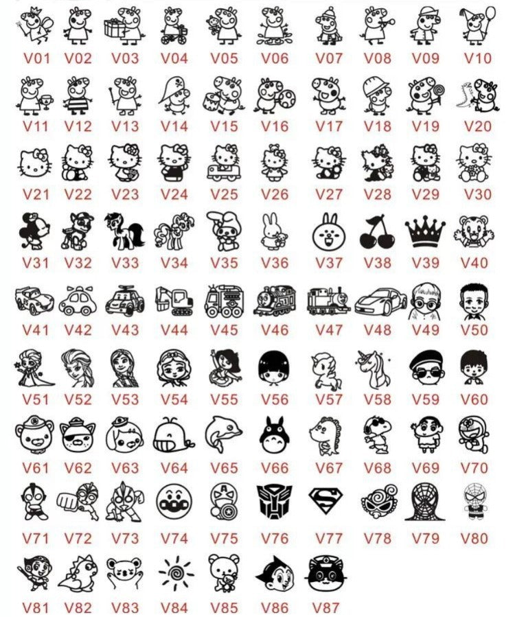 Chaque tampon est accompagné du nom de l'enfant (jusqu'à 8 caractères) et d'un code personnalisé. Notre kit comprend un ensemble de codes avec leurs numéros de référence (voir image ci-jointe).